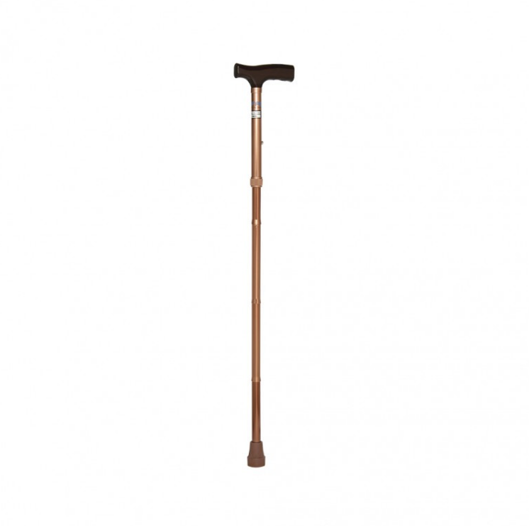 Bastón plegable de aluminio, regulable en 5 posiciones, con altura desde 80 cm a 90 cm.