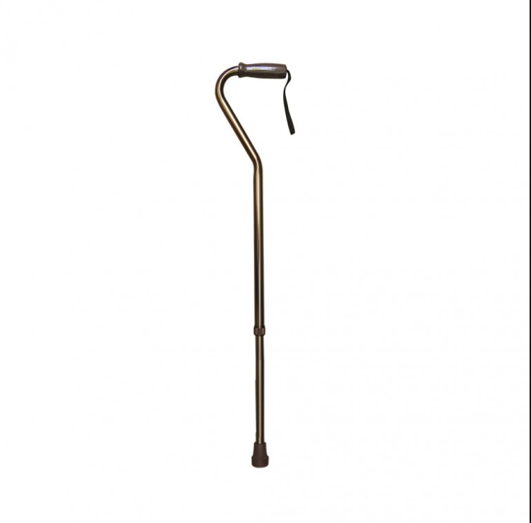 Bastón curvo, de aluminio, regulable en 10 posiciones, con altura desde 77.5 cm a 100 cm. Con cuerda para muñeca.
