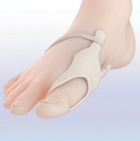Sumamente útil para el tratamiento de juanetes (Hallux Valgus). De uso nocturno. Gracias a su cinta ajustable, se logra una corrección progresiva. Puede usarse indistintamente en el pie izquierdo o derecho.